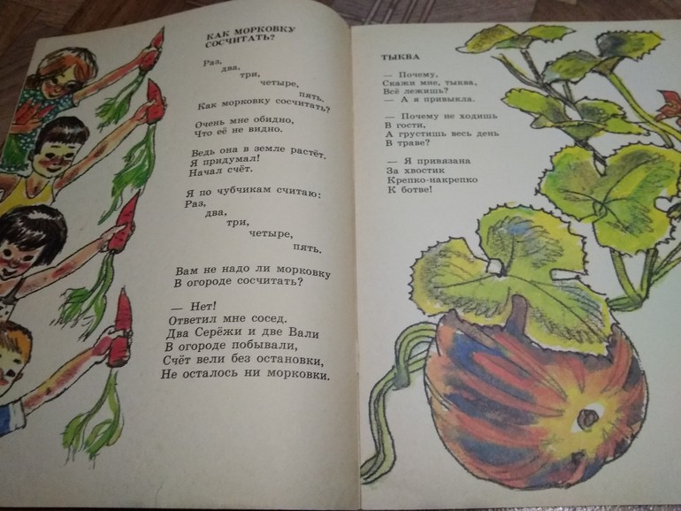 Оказалось, что художники-огородники натуралисты тяготеют к крупным формам - больше всего на нарисованных огородах в наших книгах растет тыкв и капусты.