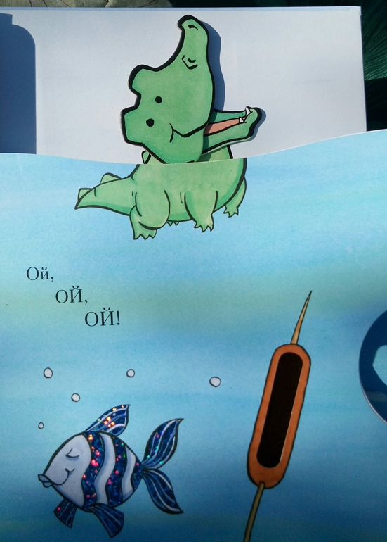 При прочтении ребенок радостно щелкает пастью крокодила и ой ой мы заменили на Ам ам)