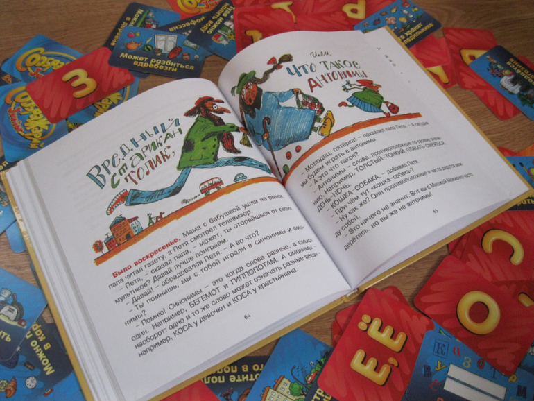 Но это не значит, что Костя книгу не полюбил. Он просто бабушку с дедушкой стал пугать рассказами про омонимы и синонимы и заставлял их придумывать слова на одну букву))