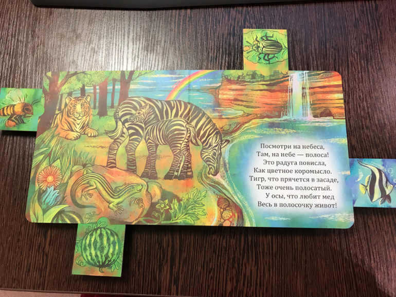 У второй книги аналогичное оформление - плотный картон, красочные страницы, стихотворения, но вместо круга - выдвигающиеся элементы.![]()