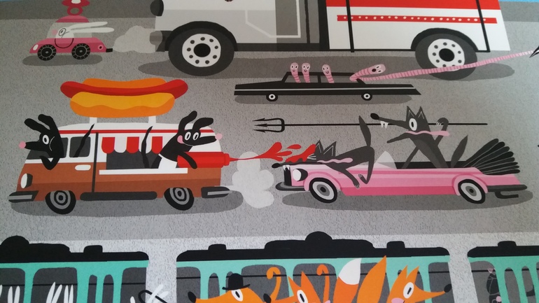 Книжка большого формата, всего 9 разворотов. Забавные сюжеты, оригинальные рисунки. Чем-то похожа на книги Ричарда Скарри с его фантастическими машинами.