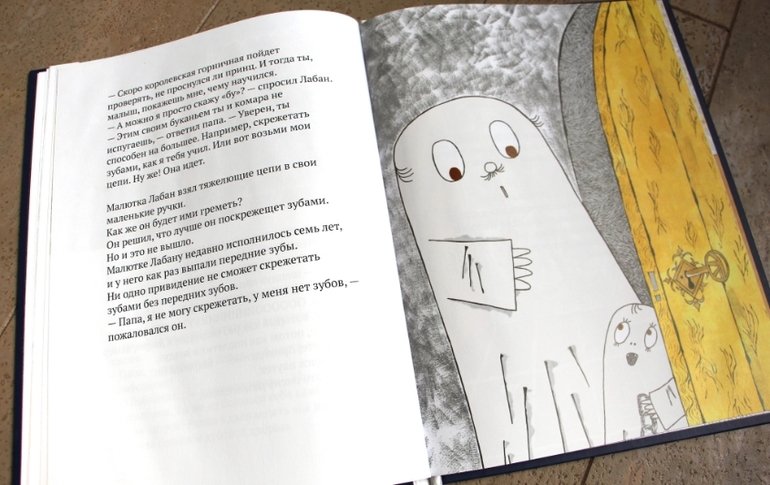 История рассказывает про малыша, появившегося в семье привидений. Малютка Лабан с удовольствием помогал маме в домашних делах, но никак не мог справиться с папиной наукой - как стать настоящим привидением, как наповал пугать людей. Лабан очень переживал, что у него плохо получается пугать людей. Переживал как настоящий ребенок переживает свои детские неудачи. Тут автор очень правдиво написал.