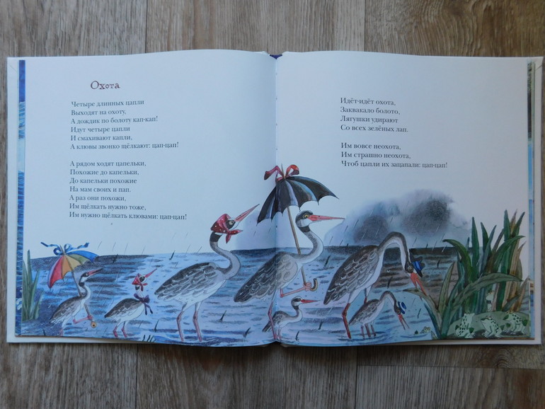 Так весело, изображая цаплю, делать малышу "цап-цап" и вместе искать пары цапля-цапелька. Но ребёнок постарше будет возмущён несоответствием текста и иллюстрации) И правда, где же четвёртая пара?