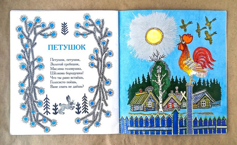 А еще первый стишок Ксюша выучила в 1,5 года именно из этой книжки - «Петушок» (не самый простой стишок такой, здесь и «маслена головушка» и «шёлкова-бородушка», а вот как-то он Ксюше по душе был, видимо).