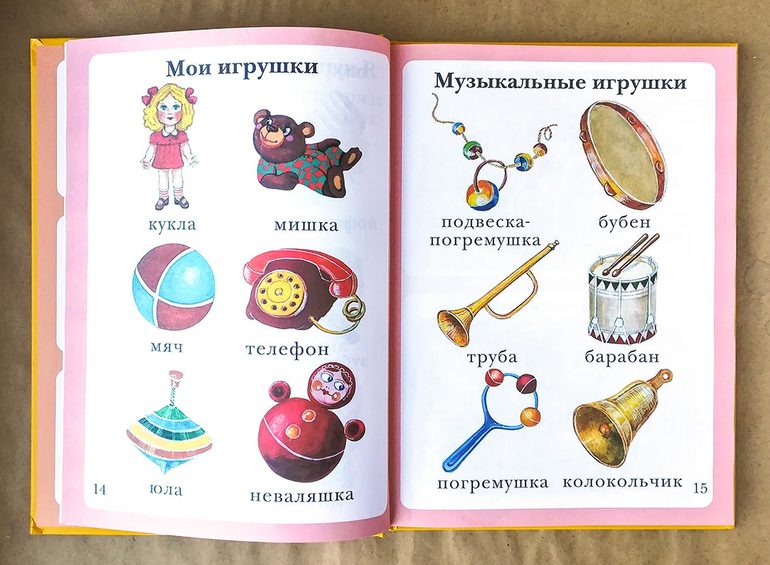 Эту книгу очень хвалят и рекомендуют. Книга большая и в ней много-много разных тем, и игрушки, и животные, и растения, и город, и много чего еще. Но меня все время смущала обложка, какая-то она похожая на советские учебники. Долго я эту книгу откладывала, но потом все же взяла.