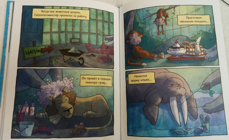 хотя нет, не приключения, в этой книге он ищет себе и другу, гиппопотаму, которому стало тоскливо жить в разваливающимся зоопарке, интересную работу на воле!