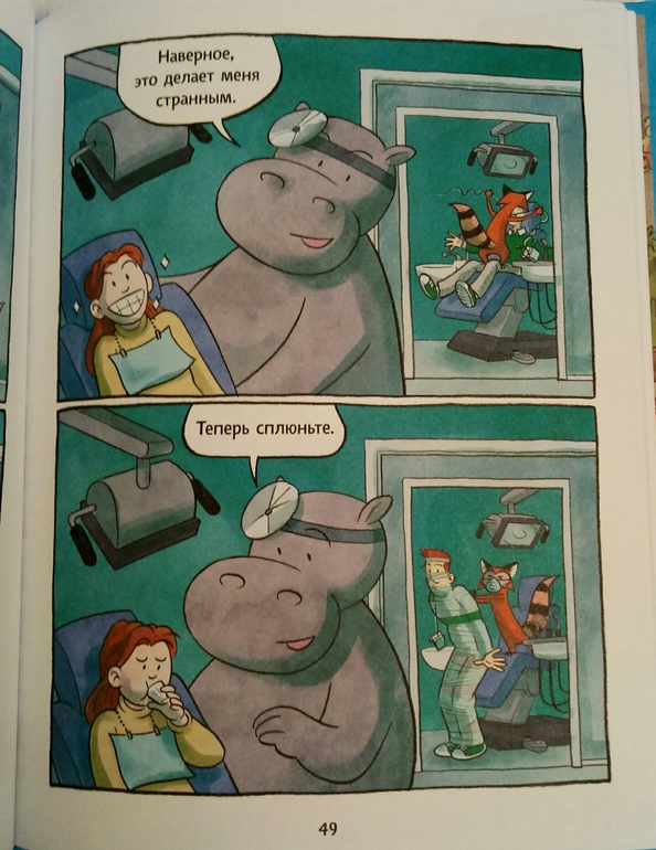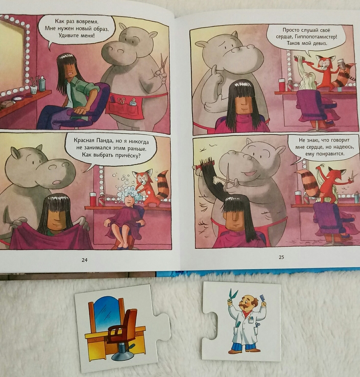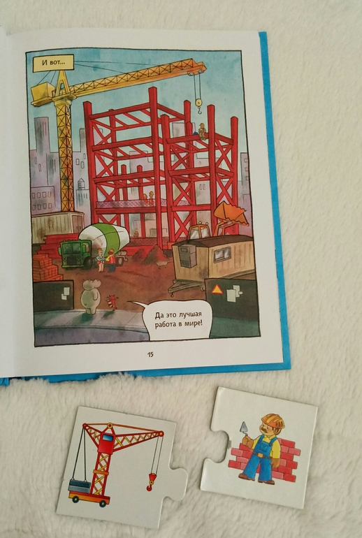Мой ребенок с недавних пор проникся Городом добрых дел, и я подумала, что еще одна книга про профессии будет не лишней в нашей библиотеке. Тем более это первый наш комикс, он как раз для самых маленьких. И если в обычным комиксах меня обычно пугает множество мелких картинок и надписей, то здесь все как надо, как мне нравится)