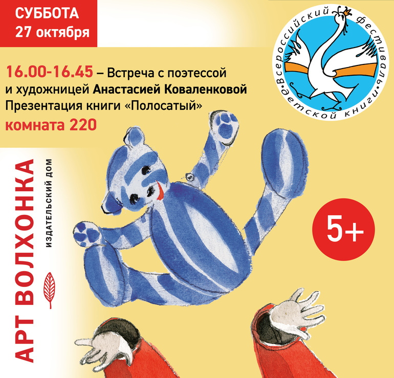 Мы на ММКВЯ случайно попали на встречу с Анастасией Коваленковой, впечатления чудеснейшие. А как она читает свои книги, впечатления от нее просто чудеснейшие. И после того, как послушали Полосатого в ее исполнении просто не смогли его не купить и для себя и в подарок))) Спасибо вам