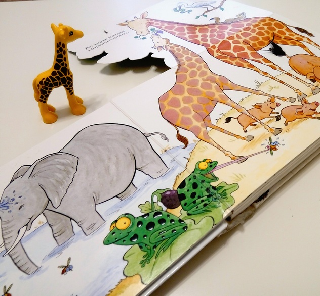 В книжке - множество животных, в том числе и редко встречающиеся в детских книгах. Но, к счастью, на последнем развороте мы можем найти их всех с подписями. Это помогает отвечать на бесконечные вопросы "кто?".