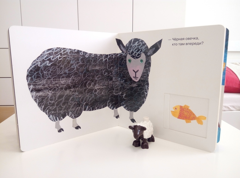 Секрет популярности этой книжки - в маленьком окошечке, в котором можно подсмотреть следующего героя. Ну, вы знаете, как любят малыши всякие задвижки ) Ну и, конечно, оригинальные иллюстрации тоже привлекают читателей...