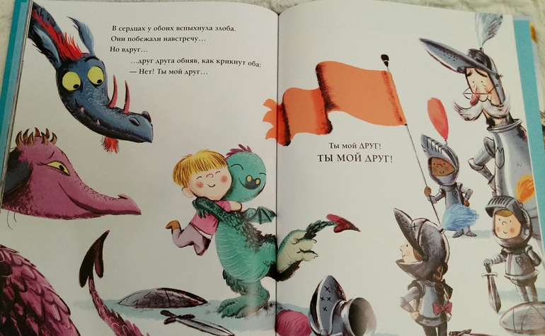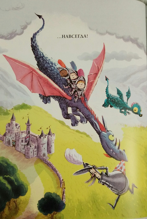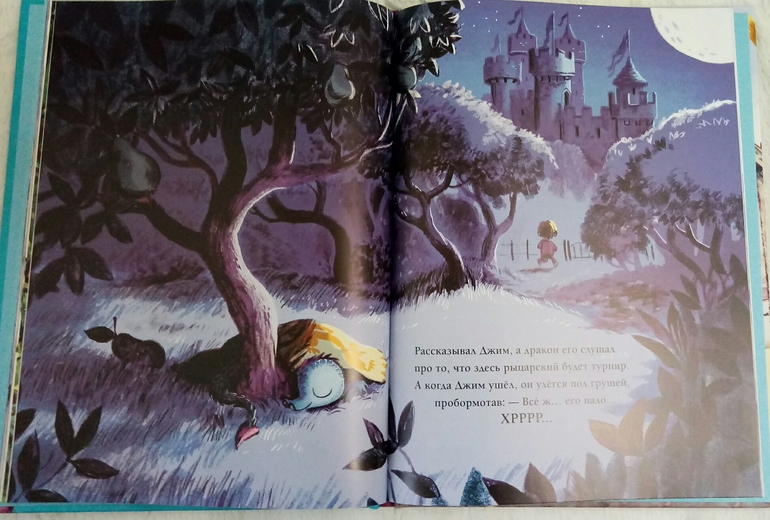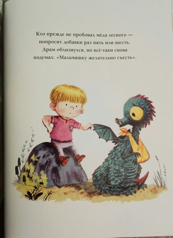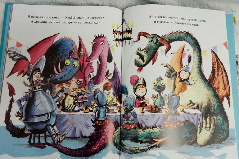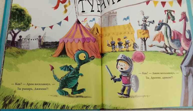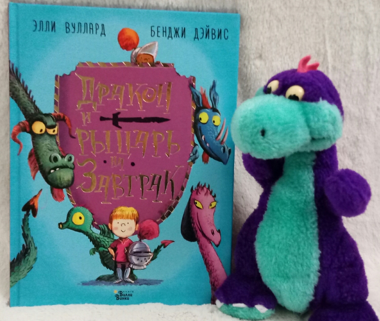 И не прогадала, нам книжка очень понравилась! Ну конечно, Драконы! Сын недавно с ними очень успешно познакомился, и мне хотелось продолжить тему) и название Дракон и рыцарь на завтрак, как будто выдавленное золотыми буквами на красочной обложке, сразу привлекло мое внимание!