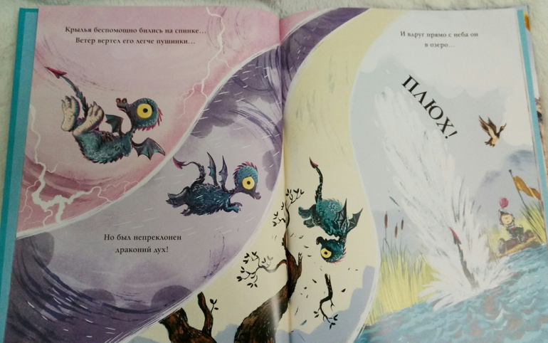 И сюжет в книге интересный! Одного бедного маленького дракончика сняли с родительского довольствия и отправили на поиски пищи, в ужасную непогоду