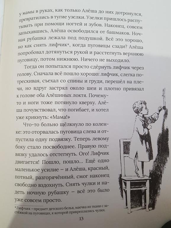 Книжка из серии "из детства бабушки" (дочка так делит книги "из маминого детства", "из бабушкиного", "100 лет назад"). Интересно описание той далекой жизни, в частности одежда мальчика, которую ему приходится не без труда с себя снять. Кроватка со съемной сеткой. И даже ботинки с шнурками сейчас редкость)