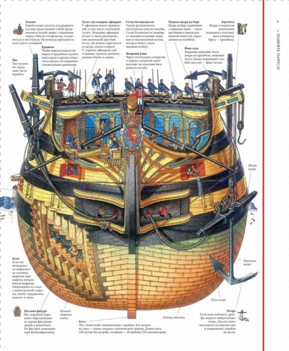 Новая книга серии «Чудесные сечения» без прикрас рассказывает о профессии моряка в XVIII веке. Рассмотрите в мельчайших деталях, как жили офицеры и матросы на борту парусного судна, что входило в их ежедневное меню, где хранились припасы. Узнайте, кто спал в кровати-гробу, как работал орудийный расчет, почему моряки боялись получить «клетчатую рубаху», как на борту определяли время, какими инструментами корабельный хирург проводил ампутацию, какое жалованье получал адмирал и многое другое.