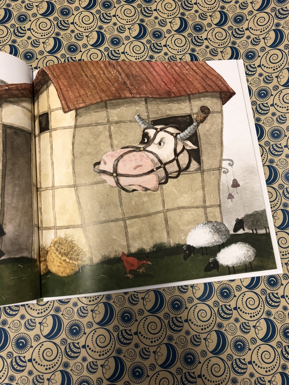 Ах какая обложка! Подкупили иллюстрации! Милый пёс жандарм, корова однорогая, крестьянка... да, но перевод Маршака мне нравится больше. У Антона Иванова ближе к оригиналу. Ну не могу я мелодично прочитать «А рОга коровы всегда сторонится Пёс, которого кошка боится...». В общем рог этот нам всю малину подпортил) и книжка спокойно стоит на полке.
