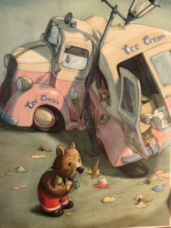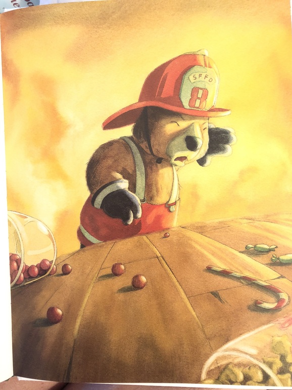 Вот тут я вообще не поняла смысла рассказа... маленький мишка хочет стать пожарным, он отправляется на поиски пожара на своей игрушечной пожарной машине. Во-первых, он портит праздник коале, во-вторых, он устраивает аварию, в третьих и в конце концов, он спасает щенка из пожара. В чем мораль? Если долго мучится, что-нибудь получится? Так ведь сколько он плохих дел наделал перед этим...