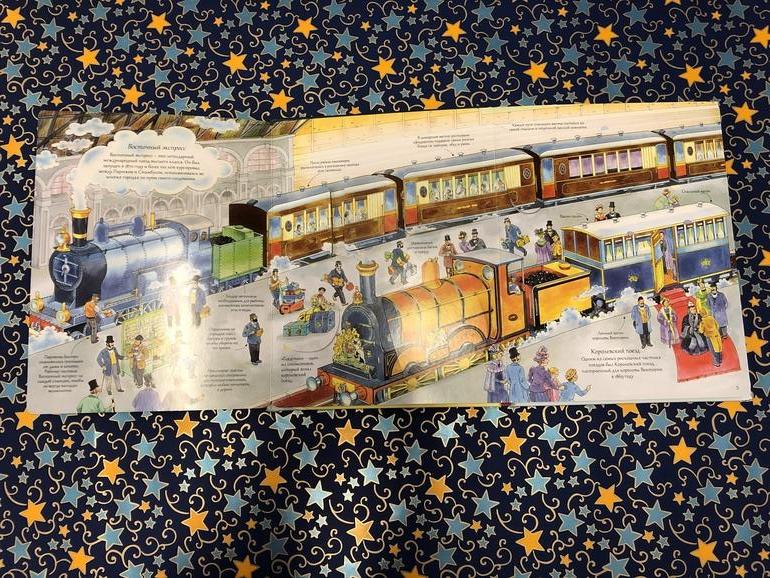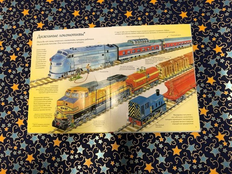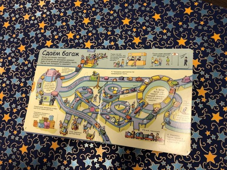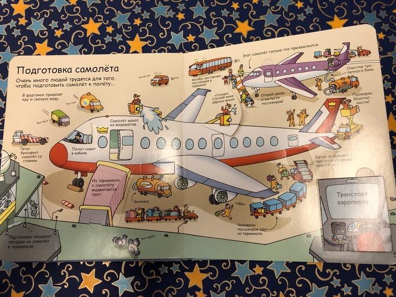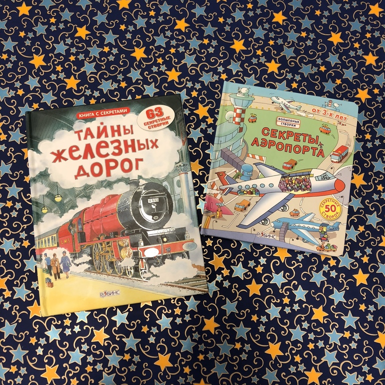 Купила их летом на выставке ВДНХ за полцены. Вышли по 350р. Конечно, нам они не по возрасту уже - аэропорты, вокзалы и модели поездов изучены вдоль и поперёк. В своё время читали из этой же серии «тайны транспорта», «секреты человека» и «секреты машин». Все створки пользовались бешеной популярностью. А эти пусть дожидаются младшего. Рекомендую деткам от 2,5 лет.