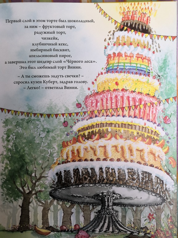 Самый яркий, сладкий и непредсказуемый у ведьмочки Винни. Только посмотрите какой огромный торт!
