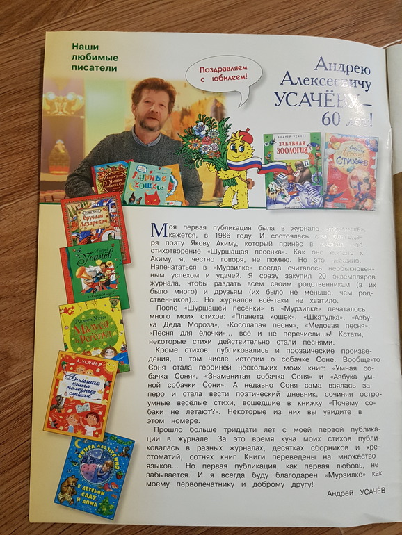 А эту страничку из Мурзилки дочка принесла. Этим летом юбилей у любимого Андрея Усачёва!)