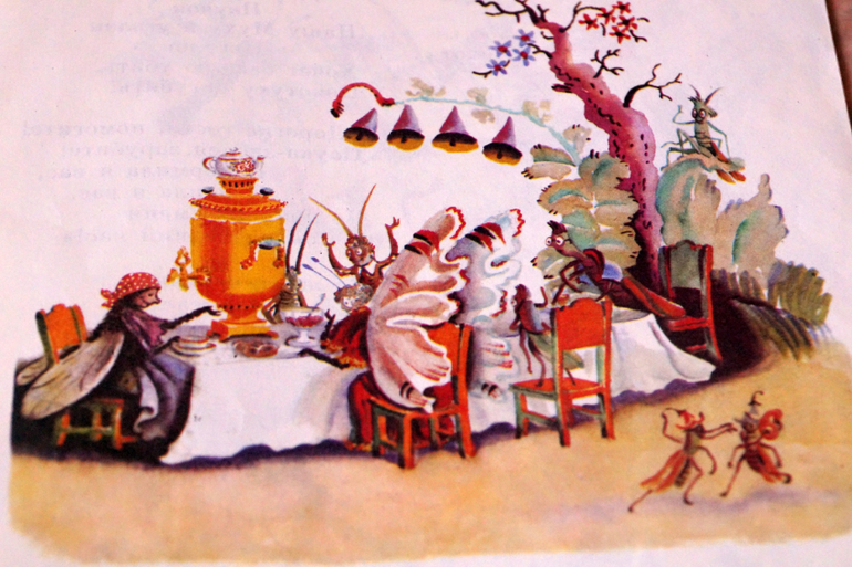 Муха-цокотуха-именинница и невеста даже. У Антоненкова не хватило одного разворота чтобы нарисовать все их гуляния)