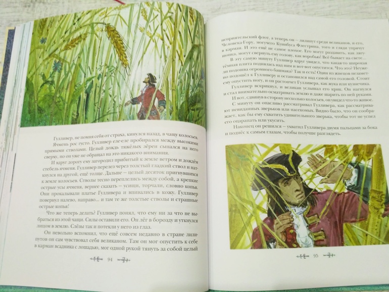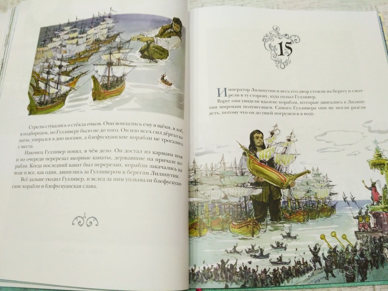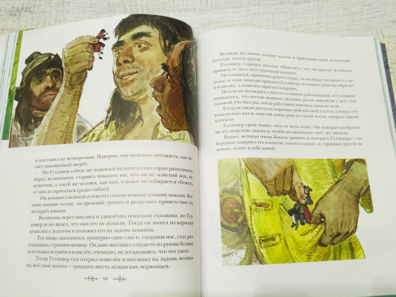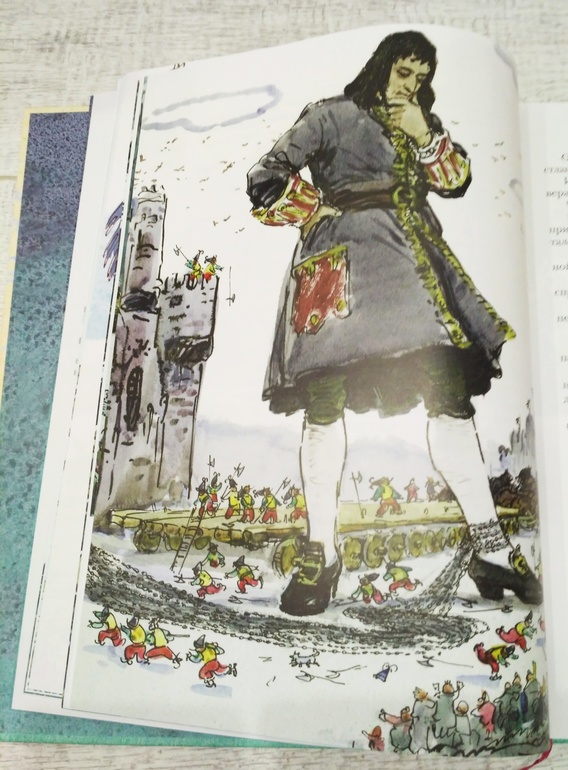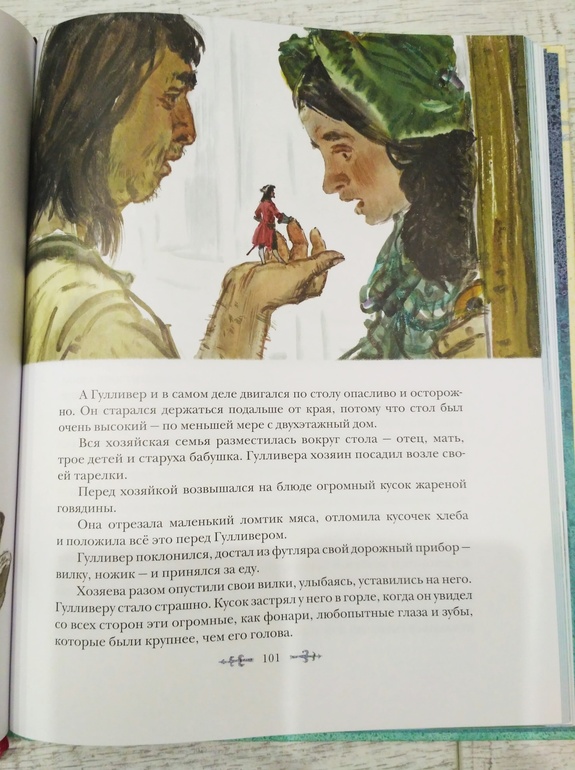 Путешествия Гулливера - действительно очень красивая книга, множество иллюстраций, почти на каждом развороте. Удобный шрифт, закладка, рельефная обложка.
