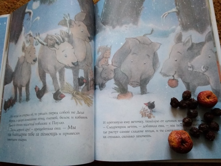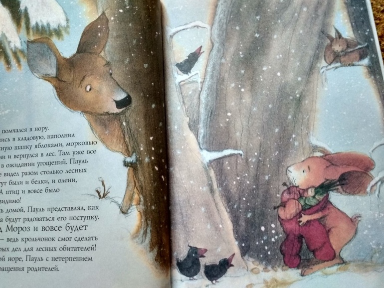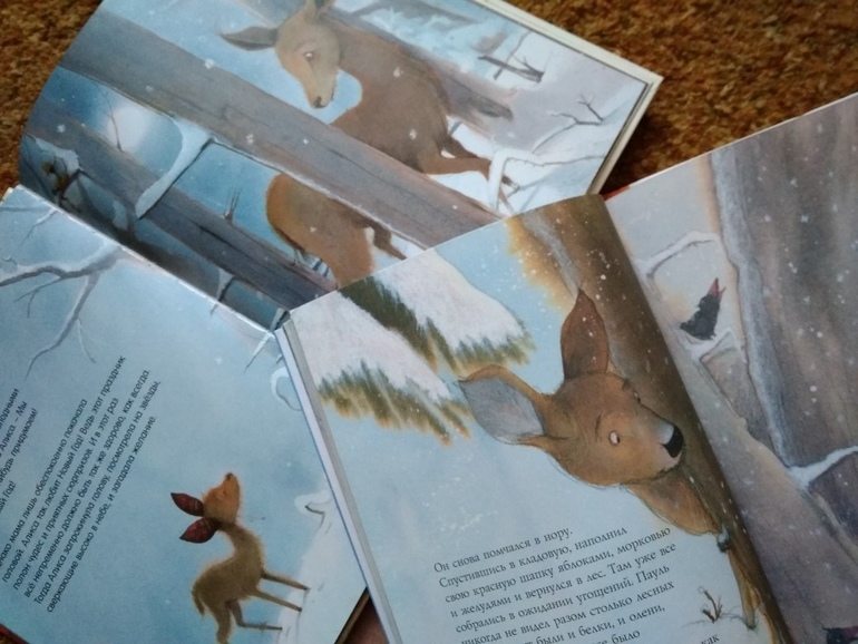 История эта, как сюжетом, так и иллюстрациями, очень напоминает купленную и не раз читанную ранее Зимнюю сказку олененка