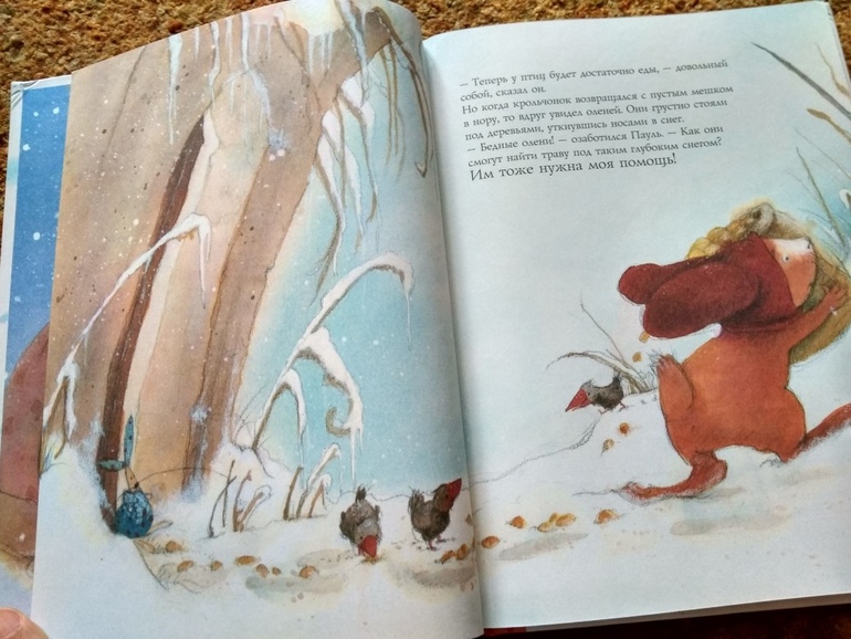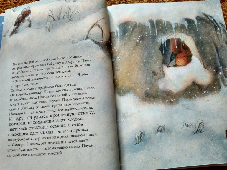 И вот, оставшийся один в норе присматривать за печкой, Пауль решает помочь бедным птицам, голодным после снегопада, засыпавшего все семена.