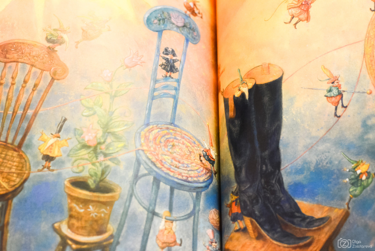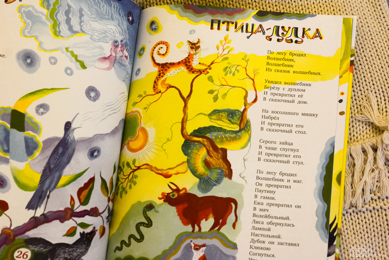 Чуридило я бы вряд ли купила, будь эта книга в свободной продаже, слишком уж ядовитая обложка (и все иллюстрации внутри, соответственно). Но книга стала редкостью, о ней часто вздыхают, и встретив её на полке магазина фиксированных цен, я приняла решение попробовать. Как оказалось, это было верным решением: ослепляющая яркость иллюстраций из недостатка превратилась для нас в изюминку, а необычные стихи с чудинкой полюбились если не с первого, то со второго раза. Пропускаем лишь стих про разбойника и его сына: оно грубовато, на мой вкус.