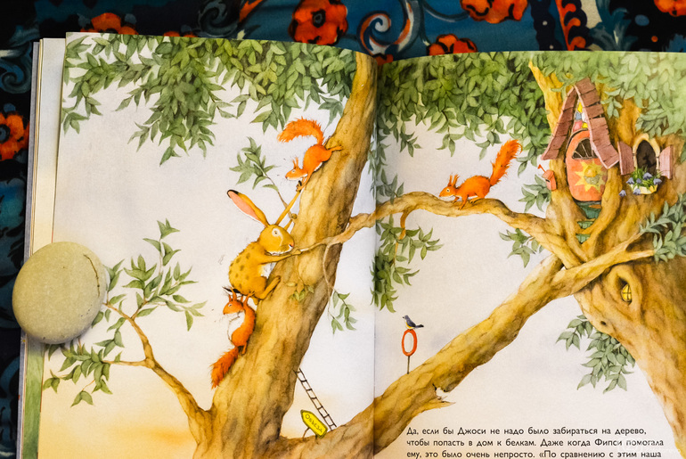 Добавили в пару к открытой летом книге вторую историю про своенравного зайчонка Джоси. Вторую книгу читаем в электронном варианте. Леденец очень переживает за зайчат, ушедших из дома перед самой грозой, и радуется счастливому воссоединению зайчат и проявлению их взаимной любви. А я балдею от акварельных иллюстраций.