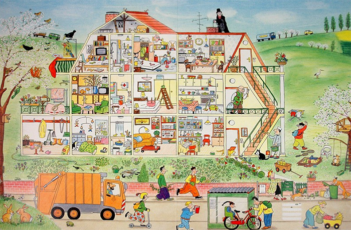 Спустя целый год я докупила с оказией последнюю сезонную книгу из сборника четырёх, что спровоцировало вторую волну любви к этой серии у детёныша. Я не раз писала раньше, что эти маленькие виммельбухи, копия Городка С. Бернер, не скучали ни недели на книжных полках, начиная с 1,3 года и до 2,5 лет. И вот, после недолгого двухмесячного перерыва все они снова с нами. Сравниваем, обсуждаем, следим за развитием сюжета.