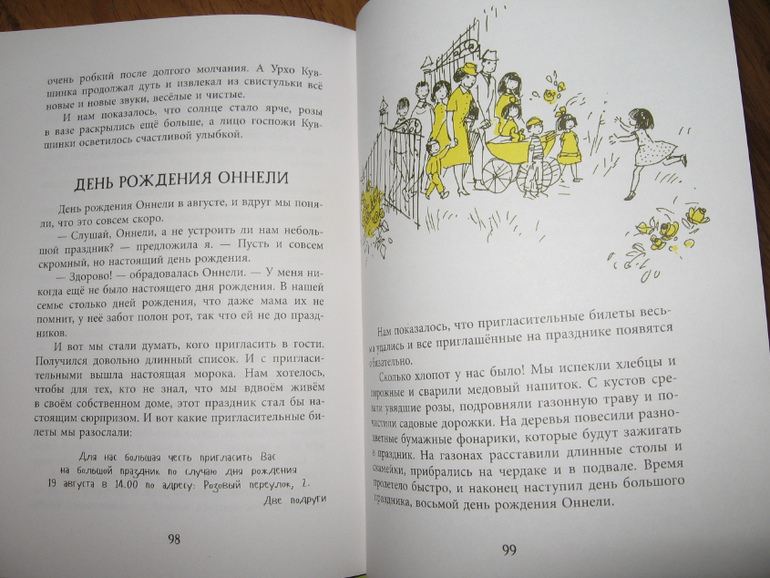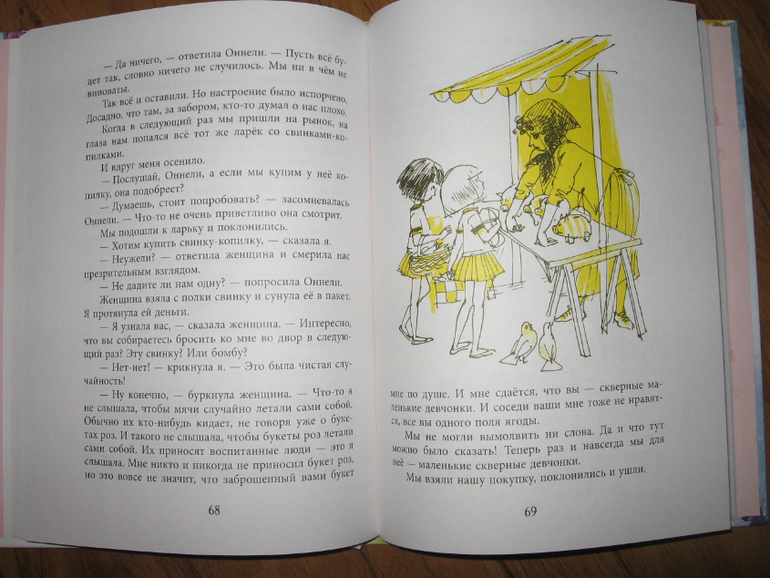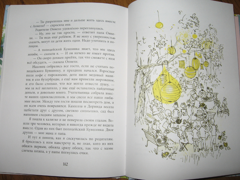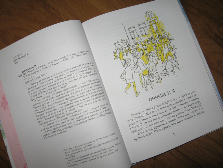 Еще до заказа меня смутило, что девочки живут совершенно одни в своем собственном доме. И когда я начала читать первую книгу "Дом Оннели и Аннели" первые чувства от прочитанного были довольно противоречивыми. Повествование ведется от лица одной из девочек - блондинки Аннели. И начинается книга с того, как вообще девочки познакомились. А состоялось это знакомство в самый первый школьный день. Аннели в школу была вынуждена пойти одна, поскольку ее папа думал, что дочь в школу отведет мама, а мама думала, что этим займется папа, причем они даже не удосужились этот вопрос как-то обсудить. А с домработницами Аннели связываться не хотела, т.к. между ними существовала обоюдная неприязнь. Да, домработницы две, папина и мамина, поскольку родители девочки вместе не живут. И вот она вынуждена кочевать между двумя домами, толком и не понимая, а где же ее дом. И у мамы, и у папы она чувствует себя лишней. Папа профессор, поэтому мешать ему нельзя. Мама председатель Женского общества и тоже всегда занята. У Оннели родители живут вместе, и даже в школу она пришла в сопровождении четырех братьев. А всего братьев и сестер у Оннели восемь. И вся большая семья ютится в одной маленькой квартирке. И тем не менее Оннели тоже одиноко, потому что старшие с ней не играют, считая слишком маленькой, а младшие с ней не играют, считая слишком взрослой. Так девочки и подружились, встретив в школьном дворе родственную душу.