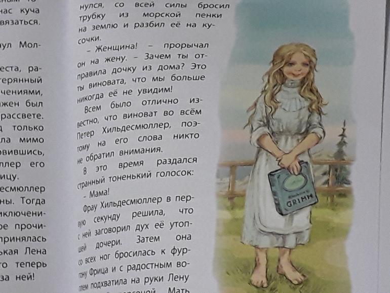 Трудится Лена действительно как Золушка. Вообще-то семья Лены не слишком нуждается, но ее отец, рачительный немец, считает, что деньги к деньгам. Именно поэтому он отправляет дочь подальше от дома и тщательно собирает заработанное чадом. Жизнь у Лены безрадостная, одно утешение-книга сказок братьев Гримм. Однако наступает момент, когда хозяйка обнаруживает, чем занимается прислуга, и отбирает книгу. Бедная девочка пишет письмо матери, о том, что ей ничего не остается, как утопиться.