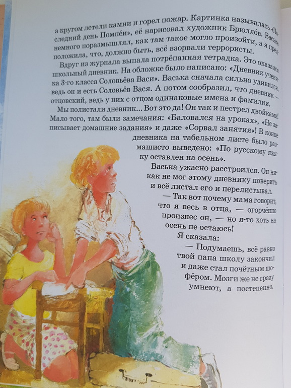 Мальчик Вася Соловьёв, которому тяжело даётся русская грамматика, находит школьный дневник ученика 3 класса... Соловьёва Васи. И какой любопытный дневник... "Баловался на уроках", "Сорвал урок" и даже... "по русскому языку оставлен на осень"! Вы уже, наверно, догадались, что так "радовал" в своё время своих родителей папа Васи - тоже Вася. Только папа Вася, кажется, об этом забыл)