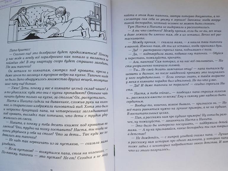 Перед историей вступительная страничка, где папа бушует: "Сколько это безобразие будет продолжаться? Почему у нас везде и всюду всё поразбросано как попало и валяется не поймешь где?..." Ох, как это актуально для нас)