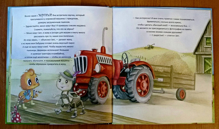 Очень нам понравилась эта книжечка. Сразу пленяют милые и приятные глазу картинки. Текст легок и познавателен, отлично подойдет для детей лет с трех. Слушая историю, малыш познакомится с животными, которые живут на ферме, узнает, чем они там занимаются и какую пользу приносят. Путешествовать по ферме мы будем вместе с маленьким симпатичным паучком по имени Яна, которая отправилась туда на каникулы.