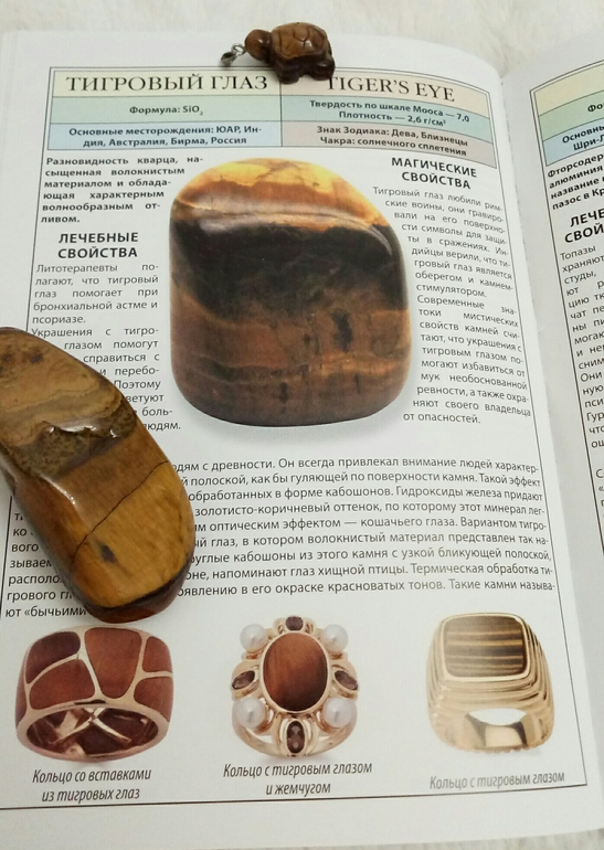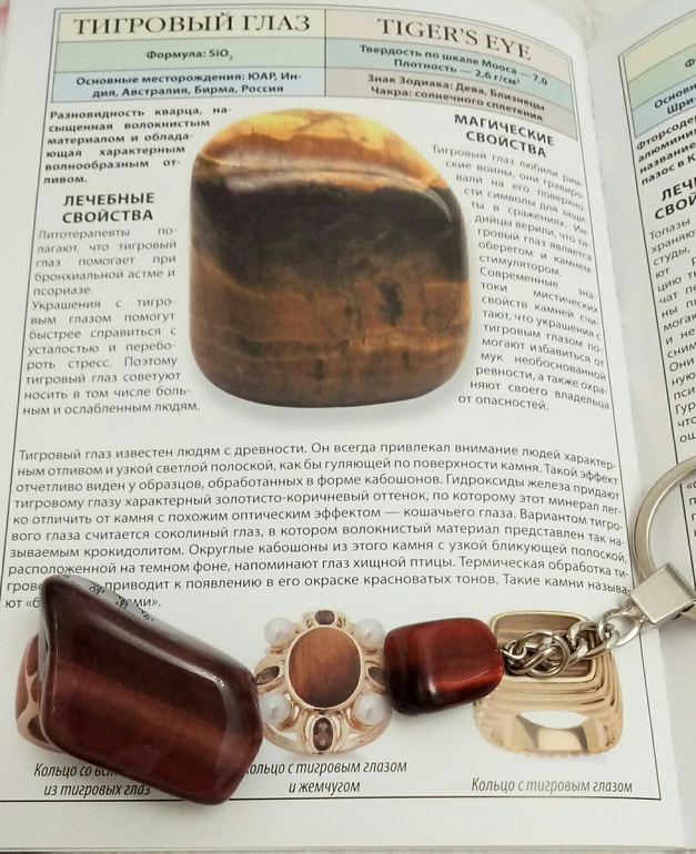 Вот камни Тигровый глаз и Бычий глаз мне всегда очень нравились, и только из этой книги я узнала, бычий это тот же тигровый, просто подвергшийся термической обработке