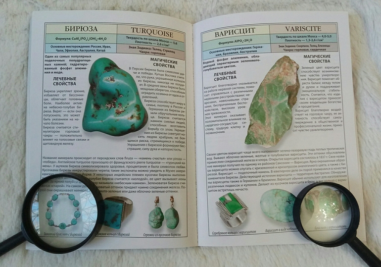 Каждому камню посвящена одна страничка, где помимо крупного фото камня, есть :