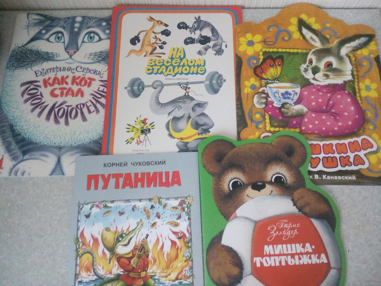 Их у нас очень мало. Доставали несколько раз. Сын остался равнодушен к Коту-котофеечу. Остальное читаем с удовольствием. Нравятся тигры на стадионе, хвостик на задней обложке у Мишки-топтыжки, красные сапоги у петуха в сказке Заюшкина избушка)).