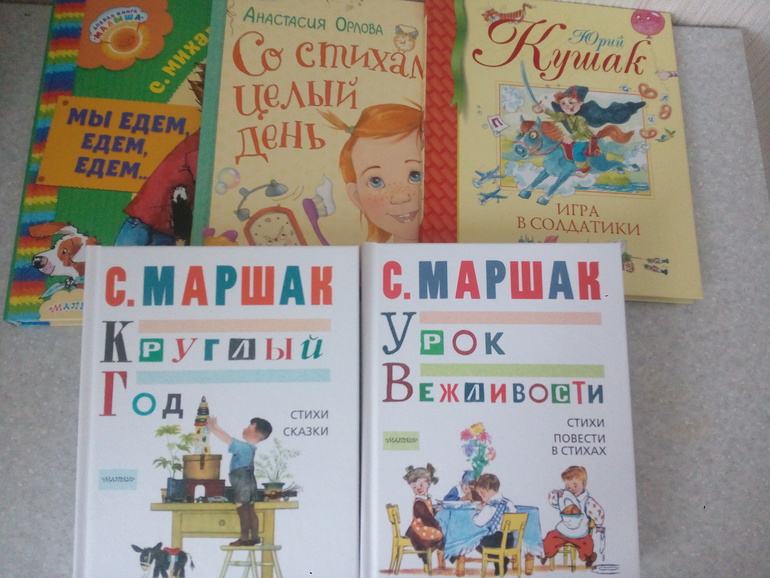 Завидую вашей подборке Маршака (у нас 3 тоненьких от М-П и синий сборник сказок) и Михалкова (тут совсем все плохо-Трезор, Дядя Степа и Мы едем, едем), нужно срочно исправляться!