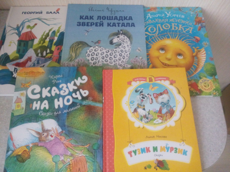 Новая книга -"Летела сова-веселая голова". Мы её часто достаем, но я никогда не смогу назвать её своей любимой книгой. Мне не хватает картинок, и оскаленные морды лис не нравятся. Но! Сын слушает, и это гораздо важнее)."Бычок -смоляной бочок" досталась от племянников, прочитали 1 раз. Ужасные картинки.