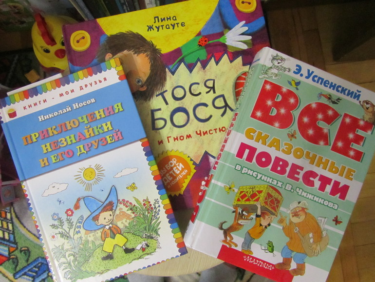 Ещё перечитывали Незнайку, так как дочка ходит в Школу актерского мастерства, и там они ставят сейчас спектакль по Незнайке, у дочки хорошая роль Синеглазки с достаточно большим количеством текста. Поэтому читали сказку заново, чтоб обновить в памяти сюжет ))