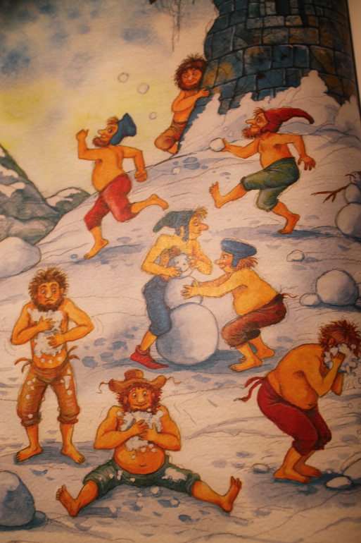Очень нравится такая иллюстрация, на которой разбойники лепят снеговика и веселятся как дети!