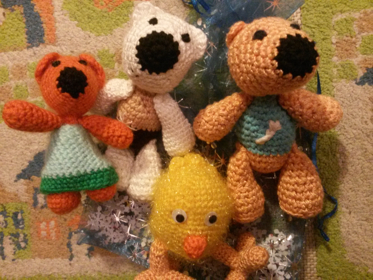 А вот это подарок просто сразил нас всех наповал!!!!!! Откуда волшебницы все знают?)))) Илюхе так нравятся ми-ми-мишки! Любаш, чудесные игрушки!!! Илюха вцепился - все ему, конечно, ему))) А Настюшке очень понравился цыпленок) Уговорили делиться))) Сидят сейчас играют, Любаш, у меня тишина, наконец!!!!))))) Спасибо тебе, моя родная!!!!!!