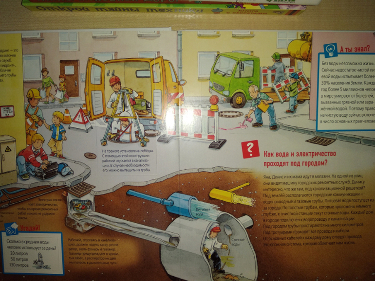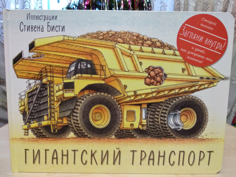 Книга перекочевала из прошлогоднего топа. Второй год в любимчиках. Да и не удивительно, с такой точной и подробной прорисовкой всех деталей. Как и другие энциклопедии, читает её детям папа. Но сын и сам с ней периодически зависает. Самый любимый разворот с гигантским самосвалом.