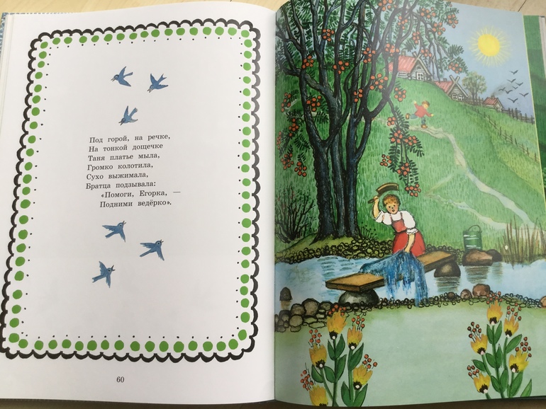 Первое полугодие 2018 мы все ещё зачитывались потешками (да и сейчас, если вспомнит, обязательно принесёт). Ну манят моего ребёнка эти ататушки, козы рогатые и прочая нечисть. И не устану повторять, я очень рада, что книга такая толстая и в ней так много потешек, иначе меня бы уж точно определили в палату номер шесть из-за бесконечного прочтения одних и тех же рифмованных строк без особого смысла. Уже радует, что собрат этой книги - "Баю-баюшки-баю" - отошёл на второй план, а то и мои родители начали ее побаиваться.