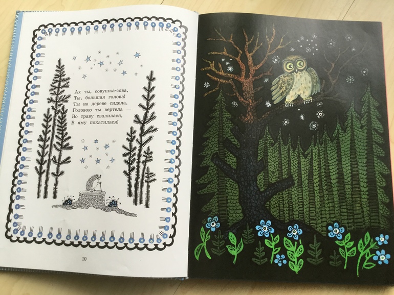 Сейчас сын, конечно, не требует читать разом, а потом ещё и ещё - он уже сознательно выбирает любимые страницы и просит прочитать/разыграть именно определенную потешку. Часто сам декламирует, не дождавшись моего прихода с кухни)