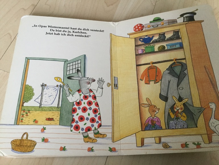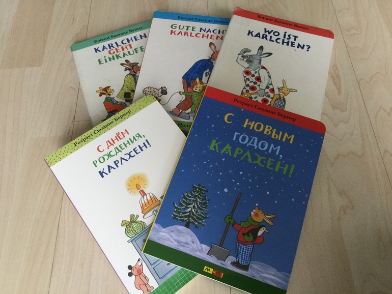 Другая любимая малышковая серия в толстом картоне - . Живя в Германии, пройти мимо такого знаменитого персонажа я, конечно, не могла. Для меня ценность данной серии в том, что она читается и обыгрывается с папой, а таких книг у нас ох, как немного. И даже иллюстрации, так ругаемые многими, мне очень нравятся. Любимая у сына - "Где Карлхен?", готов бесконечно терзать папу ею, с гордостью недвусмысленно намекая, что он то сразу догадался, где заяц прячется от бабушки, а она такая бестолковая)