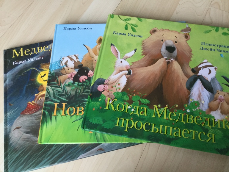 полюбился сыну сразу, что нехарактерно для него совсем, мы доооолго привыкаем к новым книгам. Но тут для него все сошлось - чёткие и ритмичные строчки, любимые животные, повторяющиеся предложения в каждой книге. Да, это не шедевр, и классикой детской литературы вряд ли станет, но тем не менее книги эти любимы многими детьми, очень часто вижу в нашей библиотеке, как детки выбирают именно эту серию. И на чтение вслух работники библиотеки выбирают истории про медведика чаще остальных. Жаль, в России переведены всего три-четыре книги.