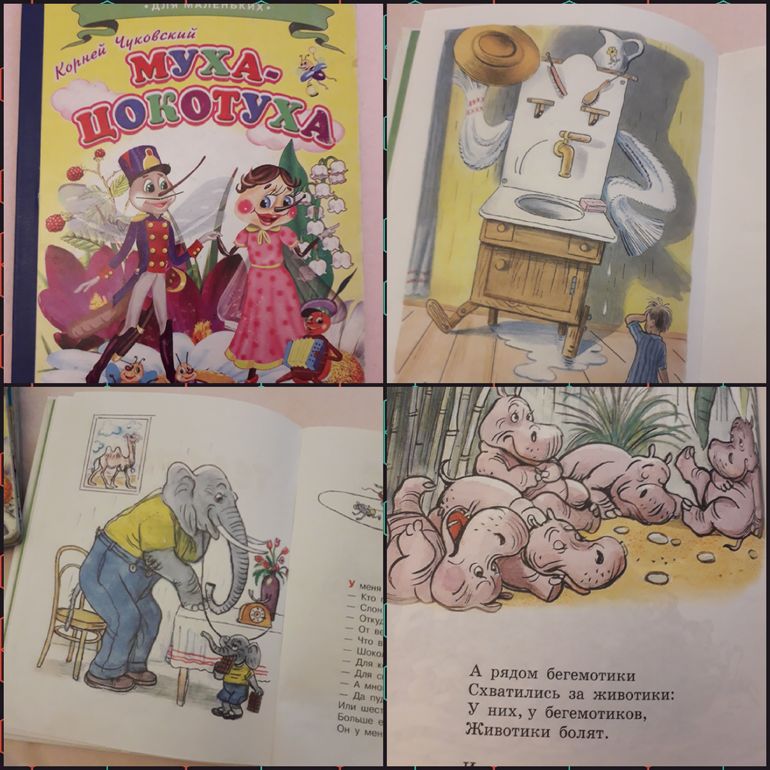 5. Ну куда же в этом возрасте без К.Чуковского, его сказки я могу наизусть рассказать хоть ночью, ведь Телефон или Муху-цокотуху прочитать подрят 5 раз Сашуля просит всегда и везде, и даже на прогулке))) Малютки бегемотики из "Доктора Айболита" жалеются и целуются ежедневно)))