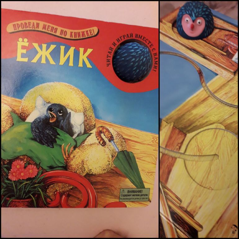 Очень милое стихотворение про ёжика и птичку, особенно привлекает резиновый ёжик, которого надо передвигать по дорожкам.